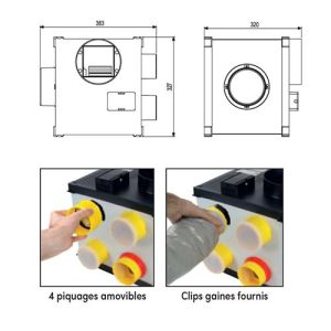 - Grâce à ses piquages d'extraction amovibles, l'installation de ce kit VMC simple flux est facilitée.
