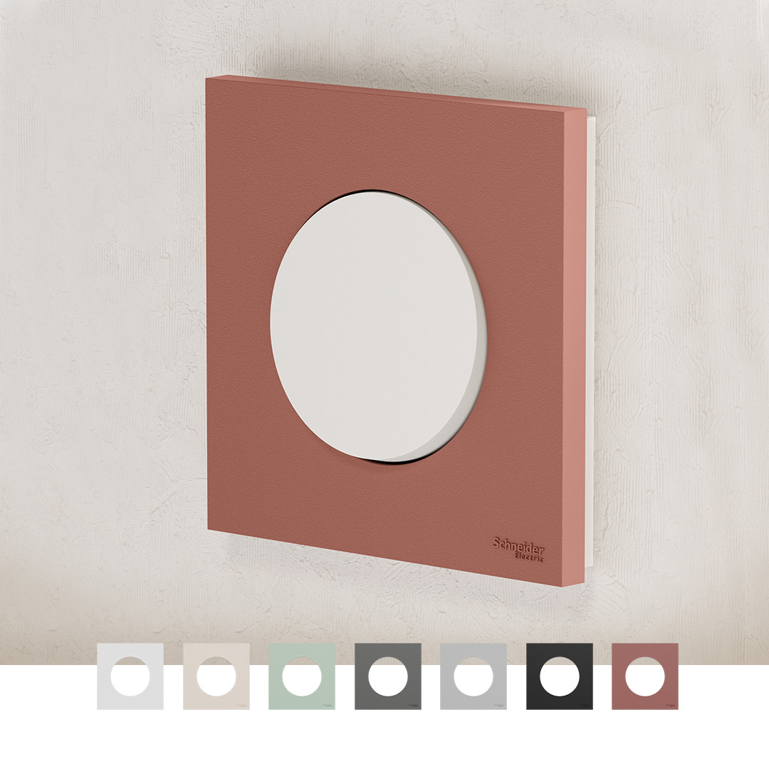 Les plaques de finition Odace sont disponibles en 7 couleurs tendances : blanc craie, gris galet, beige sable, vert jade, rose grenat, gris basalte et noir onyx. Leur design affleurant permet de s'adapter à tous les types d'intérieurs.